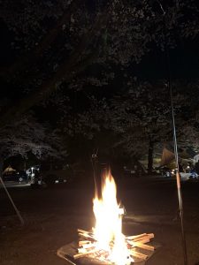 焚き火と夜桜。