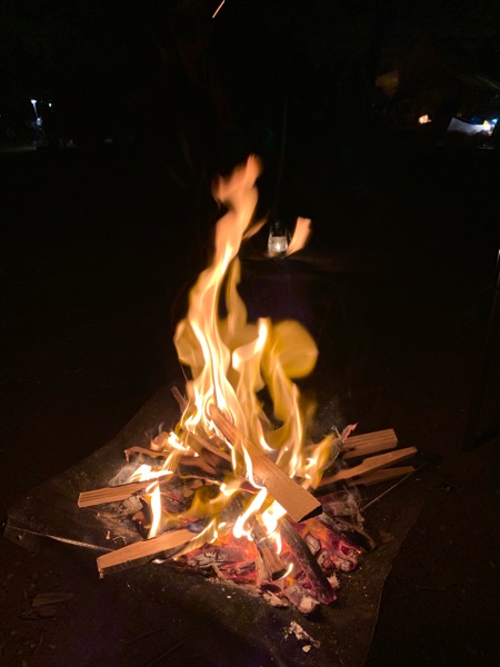 焚き火の炎も、今日はまっすぐ上がります。
