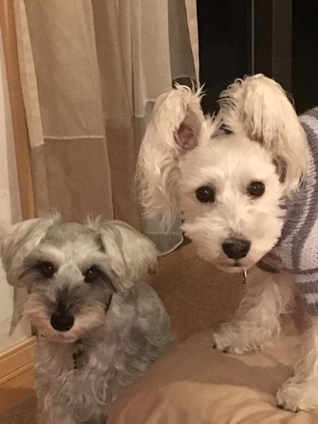うまうま じん 2018.01.18 横浜のSさんから、ふくへのお土産。 手作りのカリカリわんこクッキー。 早速お供えしました。 いつも美味しいものをありがとね。(^^) ななじんも、お下がり貰えるからね〜。 なのに、神妙なふたり。 だって、帰ってきたら悪さしてたんです。 今日はガードして出かけたのに。 なにもなかったからよかったけど…。