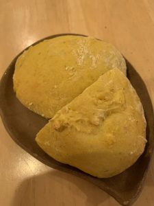 おいしいもの じん 2020.11.18 お庭仕事をするために、今日も小春ママが来てくれました。 おいしいものをもって。(^^) ファンネル入りのにんじんパンです。(^^) 写真が悪いですが。(^^;) お庭仕事が終わってポストをみたら、ここにもおいしいものが。 横浜のSさんが作ってくれた、黒糖で作ったくるみきなこ。(^^) おいしいものをもぐもぐしながら、 脇は2人で固めてます。 なんか、しあわせな1日でした。(o^^o)