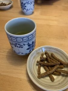 温かい蕎麦茶と、蕎麦かりんとうを食べながら待ちます。