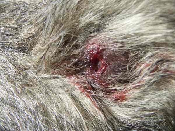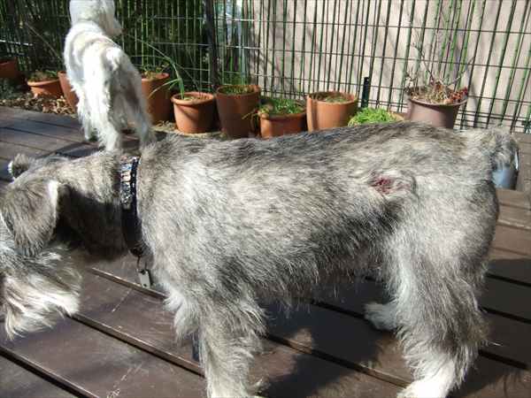 消毒の為に、少し毛を刈られたので、患部が丸見え。