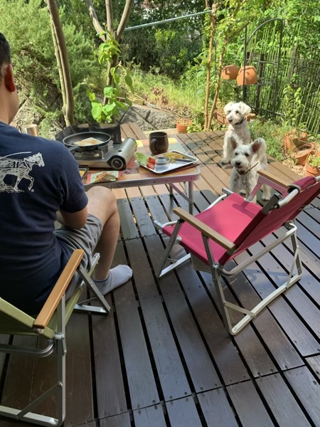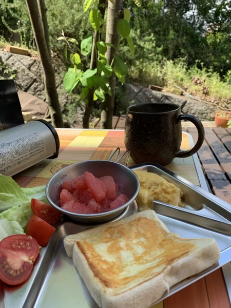 お外ご飯 じん 2020.05.10 朝は雨予定だったのに、晴れました。(^^) なので、お外ご飯。 旦那さんがいるので、久しぶりにチーズトーストです。 大したメニューじゃないけれど、 外で食べると美味しさが5割増しぐらいに感じます。(o^^o) 蚊が出てるかとなかなか出来ないので、 今のうちに楽しむとします。