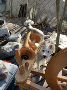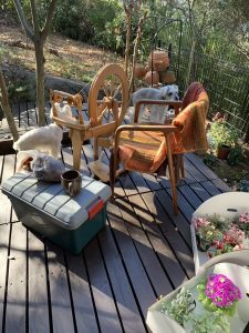 なので、外で紡ぎをしてみました。
