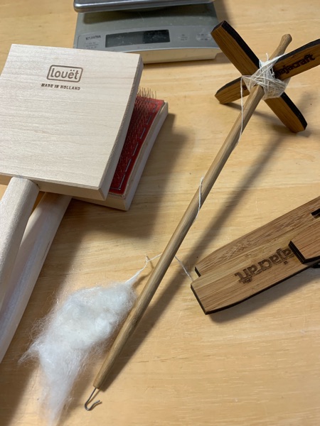コットン用のハンドカーダーと、