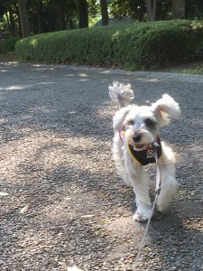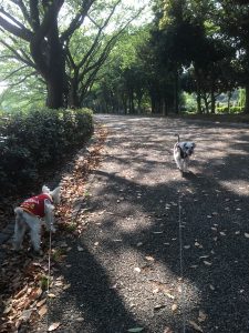 お散歩 じん 2018.04.20 旦那さんを送った後の、いつもの公園へ。 用事があるからちょっとだけ。 ちょっとでも、楽しそうに走り回る。(^^) こっちは嗅ぎまわり。(。-_-。) ま、思い思いに楽しんでもらえれば。σ(^_^;) 葉も茂りだし、 だんだん木漏れ日が気持ちよくなってきました。