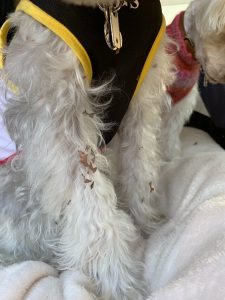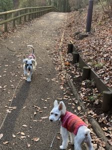 お散歩 じん 2018.12.20 久しぶりにお散歩です。 あ。 「私が」という事です。(^^;) せっかくなので公園にまで行きました。 いつもの公園ですが、 なんかよさそうな脇道が…と歩いてみたら。 やられた。 これがいたるところにべったり。 顔のは全部とったはずなのに、まだ残ってるし。 散歩より、散歩帰りの足拭きとかの方が、 大変なんだよな…。 と、分かっていても、 あの笑顔を見たさに連れて行ってしまう。(^^;)