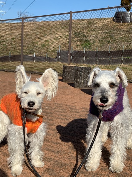 お散歩 じん 2020.01.14 お散歩に出たら、びっくりするほどあったかい。 思わずふらふらと川まで歩いてしまいました。 それにしてもあったかい。 これって春みたい。 まだ1月だというのに。 せっかくならどっかで写真を、と撮ったら。 2人も眩しかったらしいです。(^^;) それにしても、変な気候です。