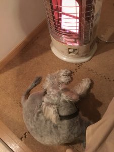 お留守番 じん 2018.03.08 2日続けて長時間お留守番をしてもらいました。 だからか、帰ってきたら大歓迎!(o^^o) が、ストーブをつけた途端。 ストーブ犬。 定位置へ。 淡白だ…。 会えた喜びより、暖かさなのね。(。-_-。)