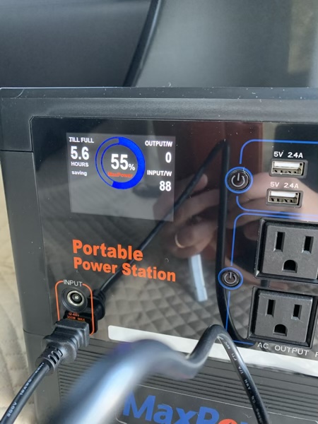ポータブル電源を持って車中泊に来ました。