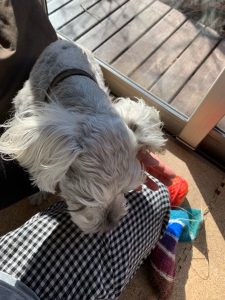 お邪魔者 じん 2019.02.12 サンプル編みをしていたら。 「ねぇ」 「ねぇ」 移動させても、手に頭がのってきます。 この違いは、なんだ?? 「…」 負けました。 足、痺れるだろうなぁ。 おや、ななさん。 なにか見つけましたか? 1日が始まったなぁ…。 って、遅いか。(^^;)