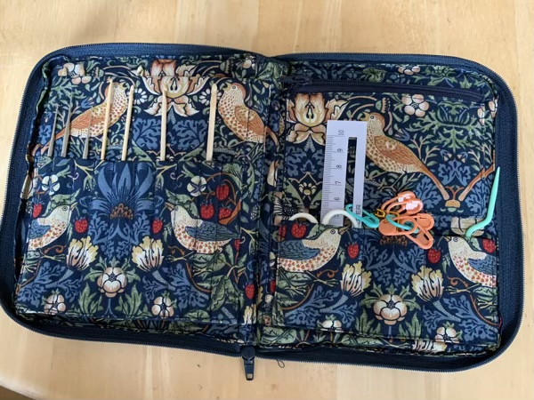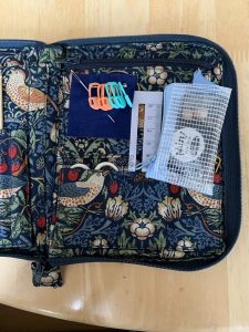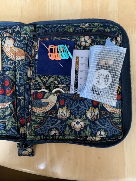 とじ針2本、段数リング、メジャーにアフガンの留め。