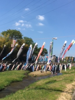 その時お散歩で見た、近くの川でやっているこいのぼり。