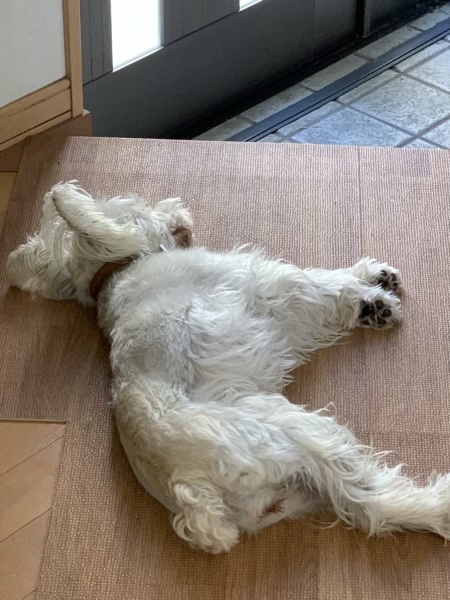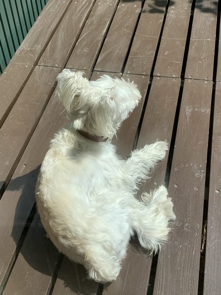 で、玄関でも冷えたから、外で日向ぼっこ?