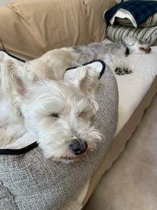 落ち着いたようで、ベッドでぐーぐー。(^^)