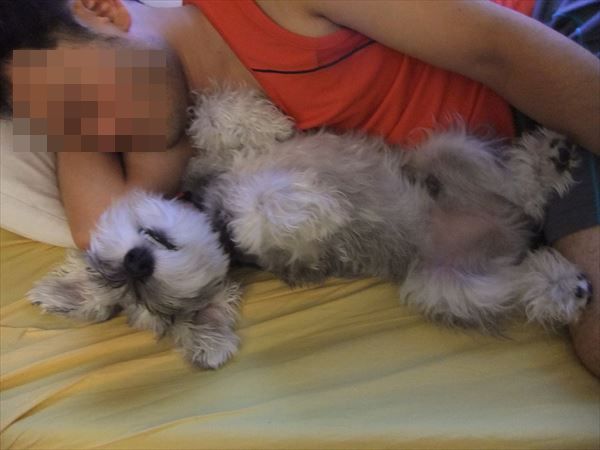 旦那さんの横で、ぐっすり寝てます。(^^)