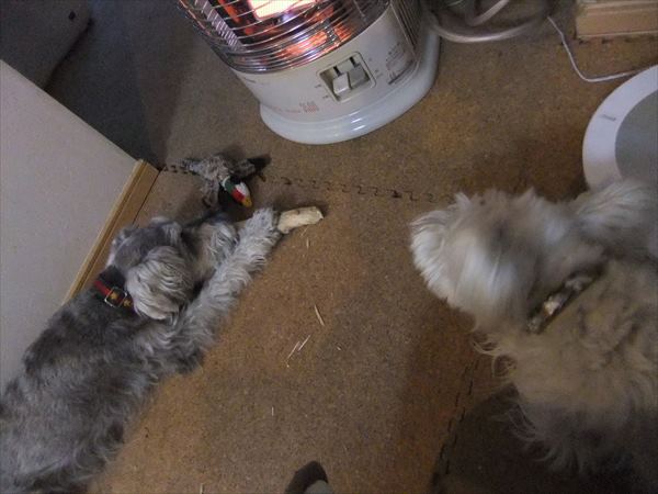 たいくつー じん 2015.03.01 雨の日はお散歩にいかない、我が家。 人はのーんびり。(^^) でも、ワンコ達は、退屈です。 退屈しのぎは・・・。 かみかみ! 憂さを晴らすかのように、二人で噛みまくっています。 残骸。 ボロボロ。(^^;) ふくは? なでて! なでて!! ふぅー。 旦那さんの手を摑まえ、こちらも一段落です。 雨の日は、みんなが退屈です。 でも、明日はランだからねー!(^^)/ って、昨日もランだったのに・・・。(-_-) ラン効果、1日しか持たず。(>_<)