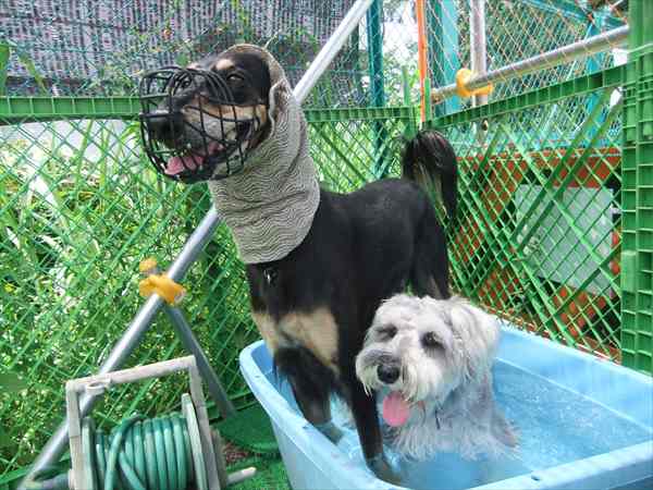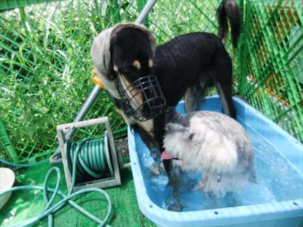 水に慣れてきた、我が家の3ワンコ。