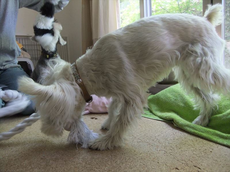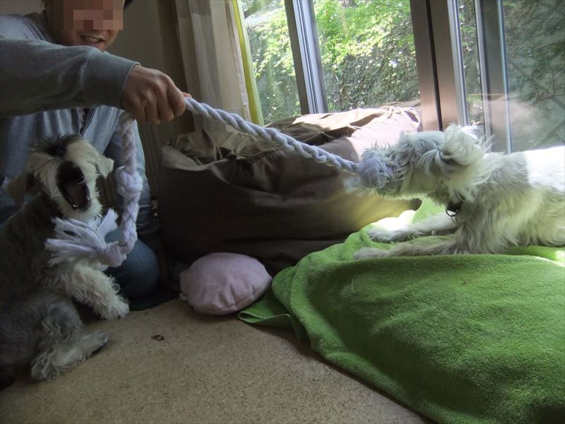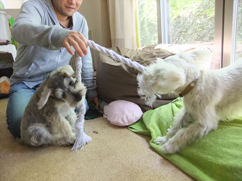 「ちょうだい」のコマンドで、離すようにしつけてあります。