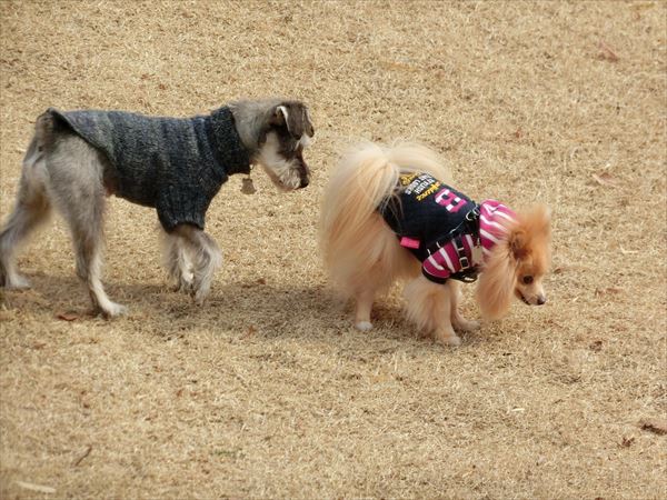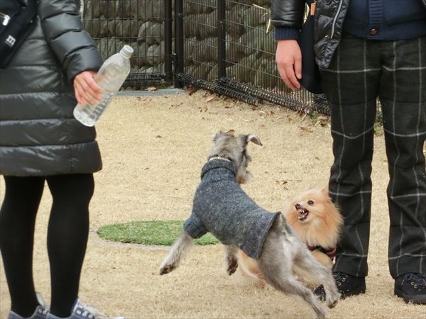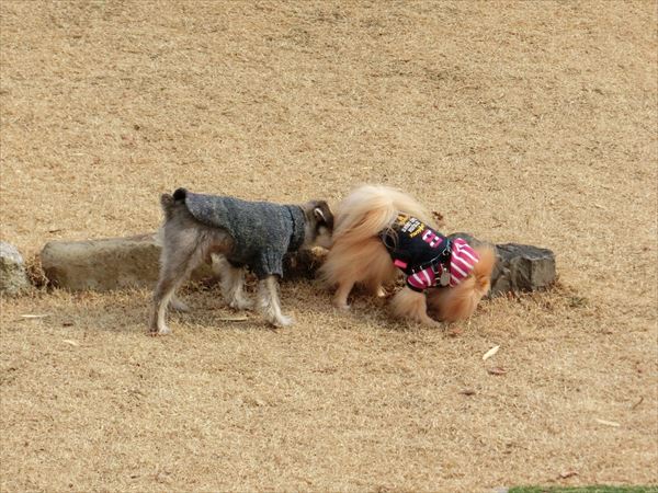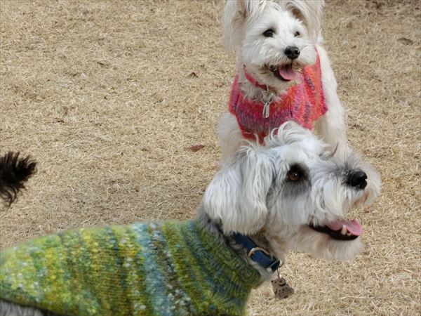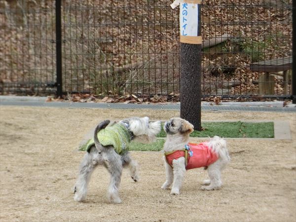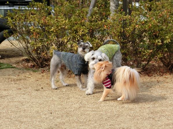 他の子を誘って(吠えて?)、遊んでいました。