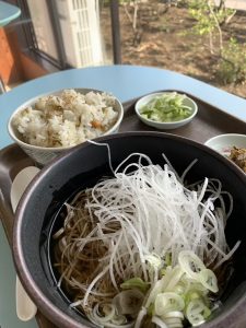 せんどそばと鳴沢菜の混ぜご飯セット。