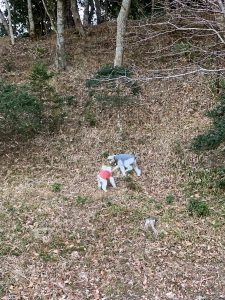 じゃ、空き地でちゃちゃっと朝のお散歩。