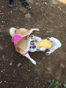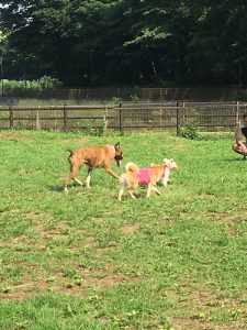 そして小型犬しかいない所に入れると、じんは力技で一人勝ちになっちゃって、