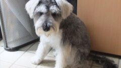 家の外階段の上まで行き、振り返って尻尾を振っています。