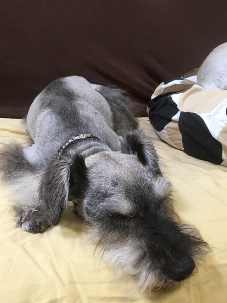 やっとトリミング じん 2017.06.29 昨日は、待ちに待ったトリミングでした。 もさもさしてたのが、綺麗さっぱり!\(^o^)/ 終わった後は、ぐっすり。(^^) そうそうこちらも。 こっちはママカット。 カットしてからシャンプーしたのですが、 毎日念入りに拭いていたのに、 地肌は、ちょっとベタベタ。 と、思ってたら、 じんには既にぶつぶつが出ていたそうです。 しまった…。_| ̄|○ この後は、小まめにシャンプーしないと! ちなみに、明日はラン。 早速洗う羽目になるのか?(^^;)