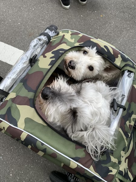 ななじんが入っていても、カートが後ろに倒れそう…。