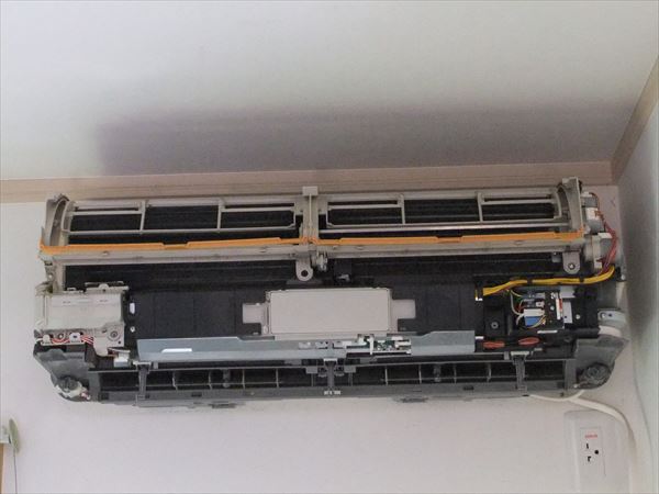掃除をしていなくて、エアコンの真ん中あたりから、