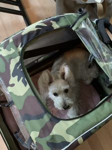 カート じん 2021.07.22 久しぶりに使おうと、カートを組み立てました。 しばらくして見てみたら。 ななが入ってました。(^^;) なんか、一人でぴったりな大きさだね。 ここによく3匹入っていたなぁ。 じんが小さかったから入れたのかな? 今のじんはと言うと。 長いです。(^^;)