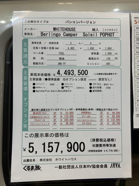 が、キャンピングカーとしては、これでも高くないほう。