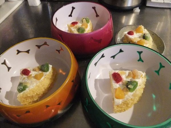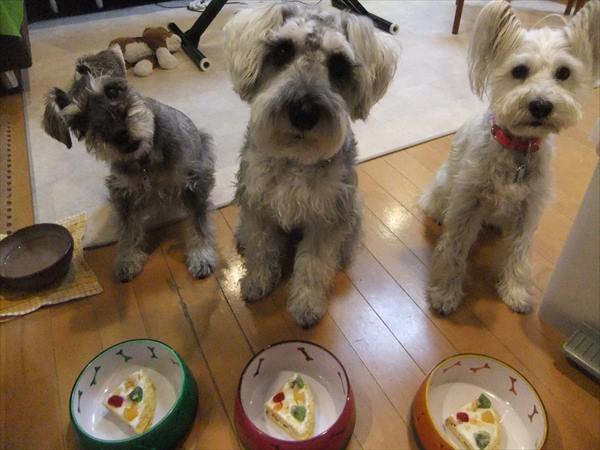 ケーキを目の前に、震える3ワンコ。