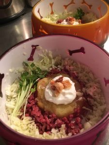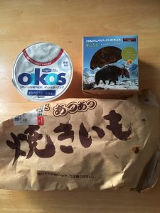 下からキャベツ、馬肉、焼き芋、