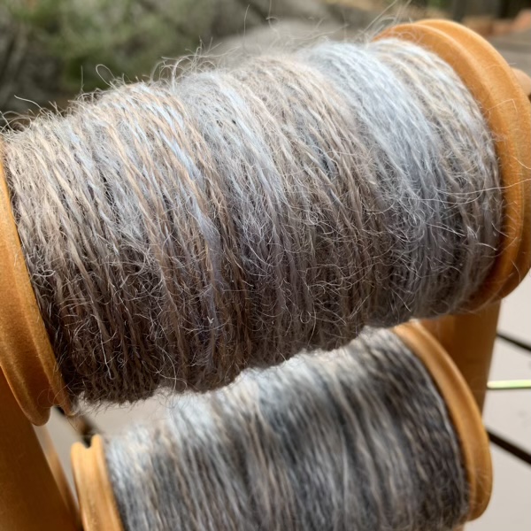突貫工事でサマーセーター用の糸を紡いでいます。