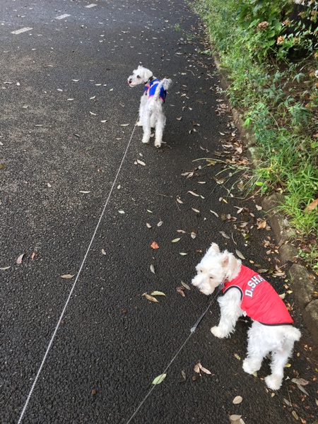 ショートコース じん 2018.09.18 いつもの公園だけど、 ちょっと忙しいから、ちゃちゃっとショートコース。 でもね。 近所の散歩では、はしゃいで怒られる事も多いけど、 公園なら、あんまり怒られない。 それにのびのび思い思いにも歩けます。 ショートコースでも、来た方がいい…よね?