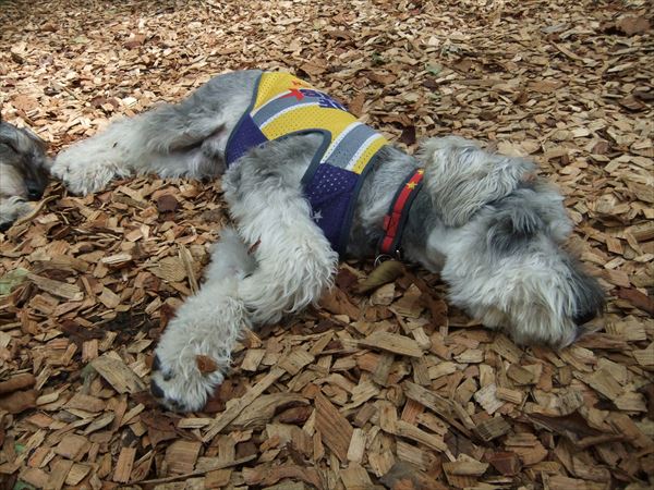 ウッドチップは気持ちいいらしく、