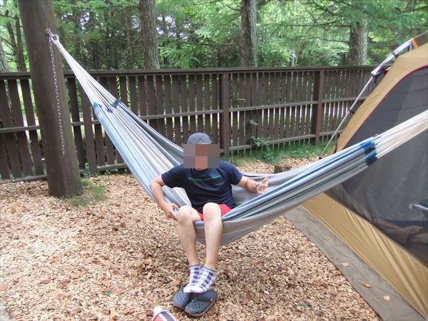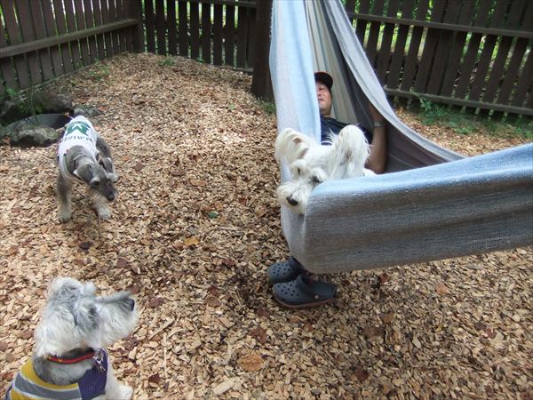 ドッグランサイトには、ハンモックのポールがあります。