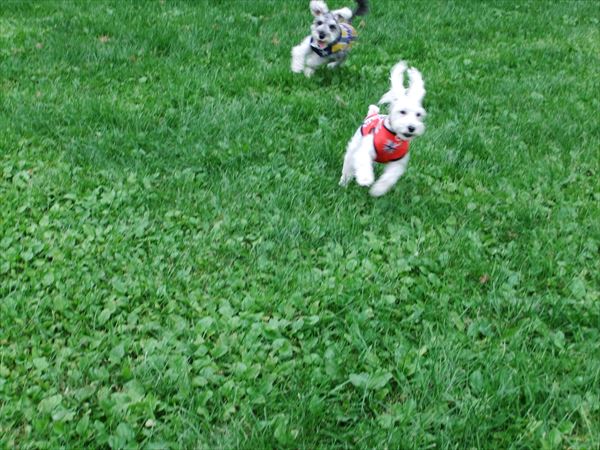 ここは、一面くさっぱらで、3ワンコ、テンション高いです。(^^)