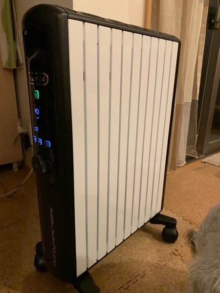 デロンギ犬 じん 2019.12.16 やってきました! デロンギマルチダイナミックヒーター。 表面温度は60度まで。 布が、触れても大丈夫! これなら、とりあえず火事は心配ないでしょう。(^^) で、なんとなく分かると思いますが。 デロンギの前に、早速陣取ってます。 これ、部屋中があったかく…はならない様ですが、 近くにいると、 遠赤外線効果で体がぬくぬくして、 気持ちいいです。(o^^o) …。 ななの場所が出来るよう、 置き場をもうちょっと考えないとね。(^^;)