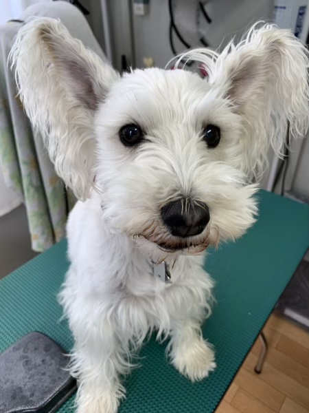 トリミング じん 2021.05.28 1ヶ月ぶりのトリミングです。 ボサ子。 ってほどじゃないですね。 ななは1ヶ月半ぐらいの方がいいのかな? ボサ男。 ボディは先月から短めにしてもらっているのですが、 顔はなぁ。 やっぱりボサ男です。 そしてトリミング後。 あー、寝てたから、顔が変形しちゃった。(^^;) こっちは。 埋もれて気持ち良さそうに寝ているので、 起こすのに忍びない。 今回はこの姿で…。(^^;)