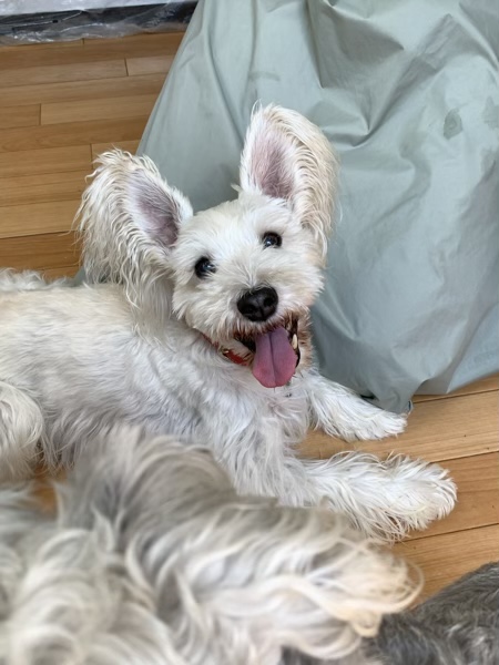 トリミング じん 2022.08.09 うちからサロンまでは10分弱。 悩んだのですが、お散歩がてら歩いて行くことにしました。 サロンに着いたら。 2人とも、なかなかはぁはぁが止まらず。 やっぱり暑かったかー。 お迎えはもちろん車で行きました。 お犬様だわ。(^^;) そうそう、今日は忘れずにフロントラインもしないと! 塗るよー。 2人ともお疲れのようで、あっという間に寝ていました。 んじゃ、こそっと塗るか。 お疲れ様でした!