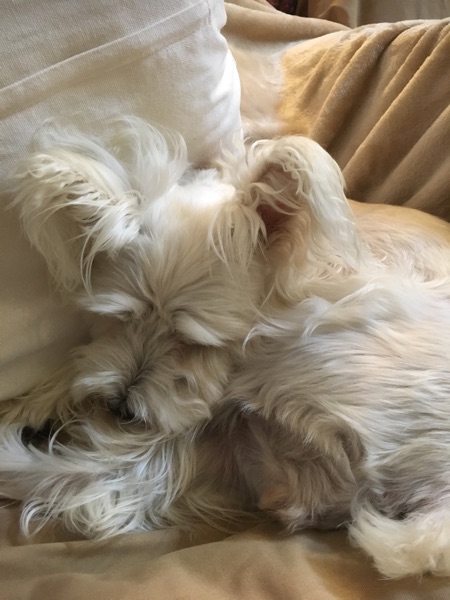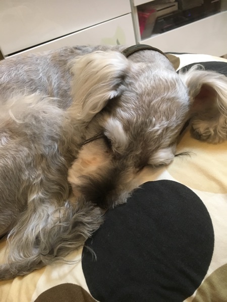 トリミング じん 2017.11.02 トリミングでシャンプー中のふくです。 気持ちよさそー。(o^^o) 家のシャンプーでは、みたことない顔だ。(¬_¬) 気持ちよくトリミングしてもらった2人。 すっきり綺麗になりました!(^^) こちらは…。 ママシャンプーだけで疲れたようです。(^^;) やっぱりトリミングはいいなぁ…。