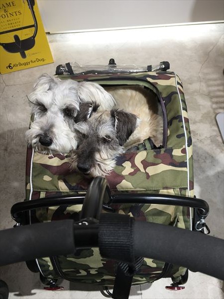 カートがあれば、わさわさ3わんこも、人混みに連れて行けるんだ!