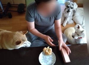 キッチンの外から、ずっと狙っている子達。