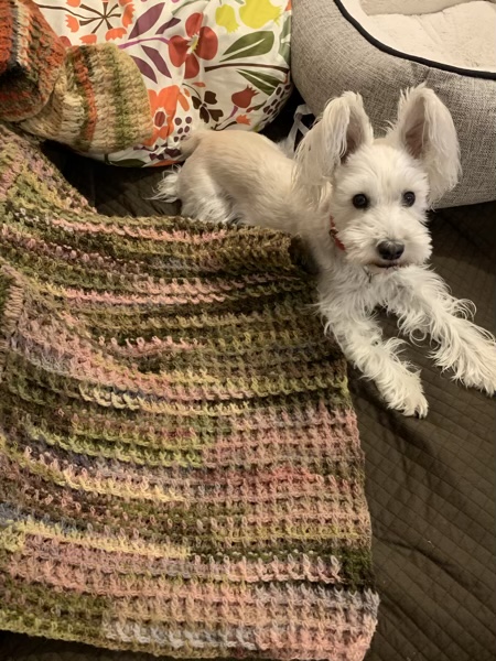 ブランケット じん 2021.11.03 ななのブランケットが、ようやく仕上がりました。 みんなと同じ量の羊毛を使っているのですが、 ななのは小さ目。 70×90センチです。 私達のはたっぷりの大きさを選んだのですが、 ななのは厚さを優先してみました。 気にいるかな? あ。 次はじんのも、すぐに取り掛かるからねっ!