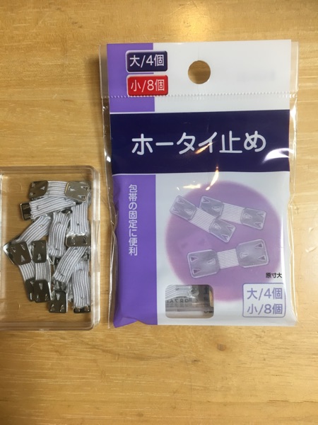 包帯を止める金具を使って、