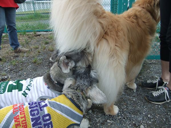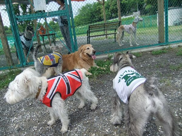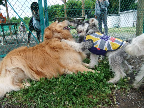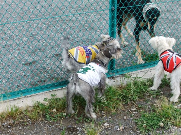 お隣には、別のわんこ達がいて、早速ご挨拶です。