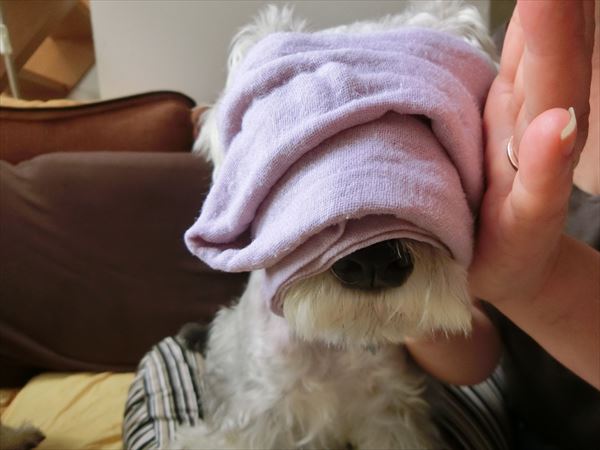 タオルと目の間に置いた指をちょこちょこ動かして撫でていると、これまた意外と大人しくしてくれました。